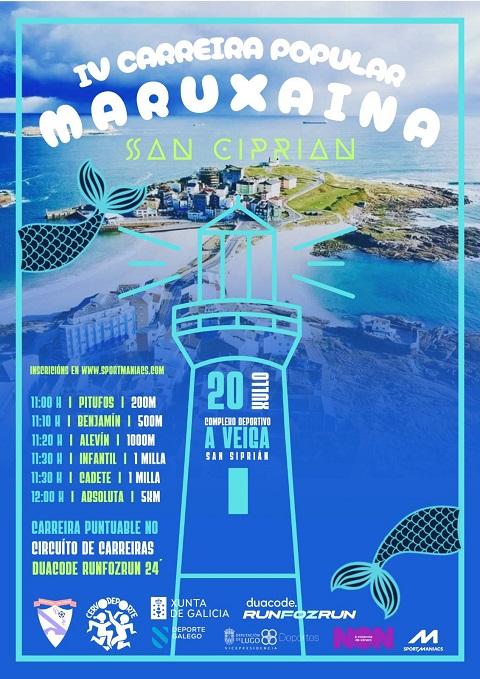 As persoas interesadas en participar xa se poden inscribir a través da ligazón https://sportmaniacs.com/.../iv-maruxaina---san-ciprin nas diferentes categorías, ata o 17 de xullo ás 23:59 horas.