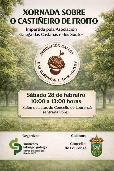 Esta actividade está organizada polo Sindicato Labrego Galego, que anuncia: “para tratar de saber máis do potencial do cultivo e tratar de poñer os medios para que alguén que decida realizar unha plantación teña os coñecementos necesarios realizaremos esta charla no Salón de Actos do Concello de Lourenzá. Impartida pola Asociación Galega das Castañas e dos Soutos e coa colaboración do Concello de Lourenzá. A entrada é de balde”.