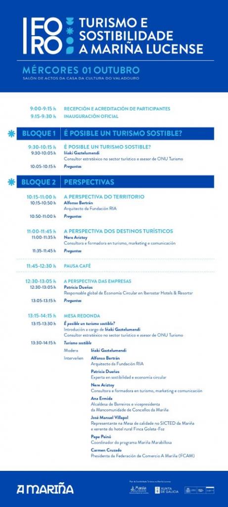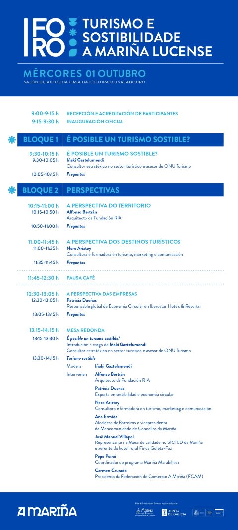 O I Foro Turismo e Sostibilidade A Mariña Lucense celebrarase na Casa da Cultura do Valadouro e trátase dun evento participativo que nace coa vocación de acoller todos os puntos de vista dos axentes sociais implicados no sector turístico: o público, o privado e a propia cidadanía.