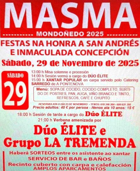 A parroquia mindoniense de Masma celebra as festas na honra a San Andrés e a Inmaculada Concepción este sábado, día 29 de novembro.