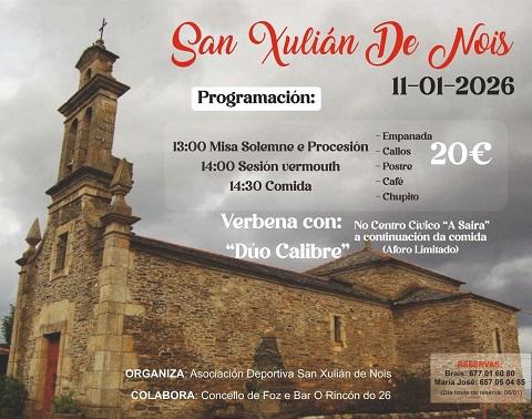 A parroquia de Nois, no municipio de Foz, celebrará a festa de San Xulián este domingo, día 11 de xaneiro.