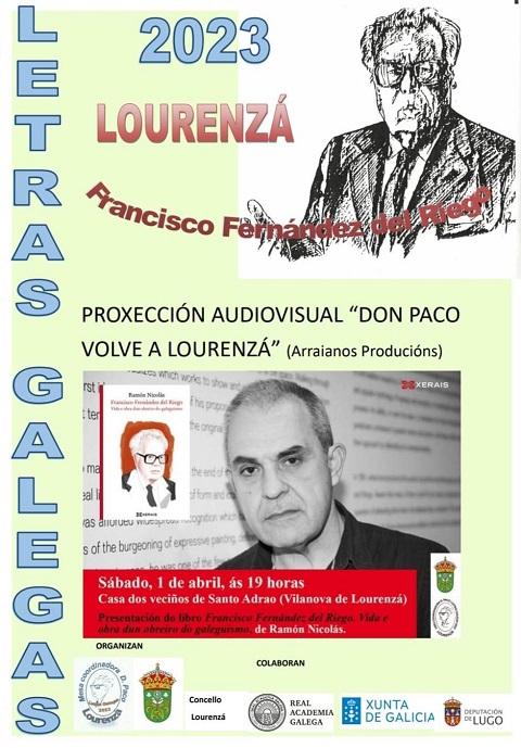 Este acto, incluído na programación para celebrar as Letras Galegas 2023 dedicadas a Fernández del Riego, está organizado pola Mesa Coordinadora Don Paco e o Concello de Lourenzá coa colaboración da Real Academia Galega, a Xunta de Galicia e a Deputación de Lugo.