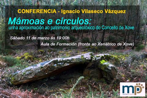 "Mámoas e círculos: unha aproximación ao patrimonio arqueolóxico do concello de Xove", é o título da conferencia que o arqueólogo Ignacio Vilaseco Vázquez impartirá o próximo sábado, día 11 de marzo, ás 19.00 horas na Aula de Formación (fronte ao xeriátrico) en Xove.