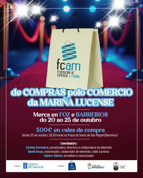 A campaña De compras polo comercio da Mariña Lucense está organizada pola FCAM e conta co financiamento da Dirección Xeral de Comercio da Xunta de Galicia.