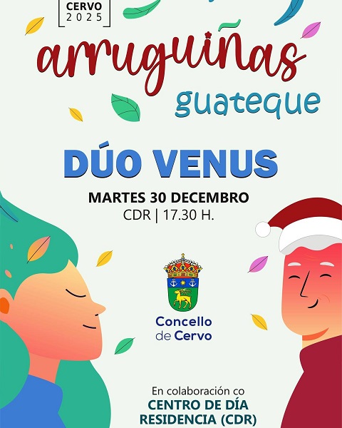 O día 30 de decembro, martes, haberá Guateque de Arruguiñas na Residencia e Centro de Día de San Ciprián, no municipio de Cervo. Será desde as 17:30 horas e estará amenizado polo dúo Venús.