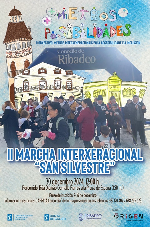 O 30 de decembro ás 12:00 horas terá lugar en Ribadeo a II Marcha Interxeracional San Silvestre Máis metros máis posibilidades, que organizan o Centro de Día A Corcordia e o Concello.