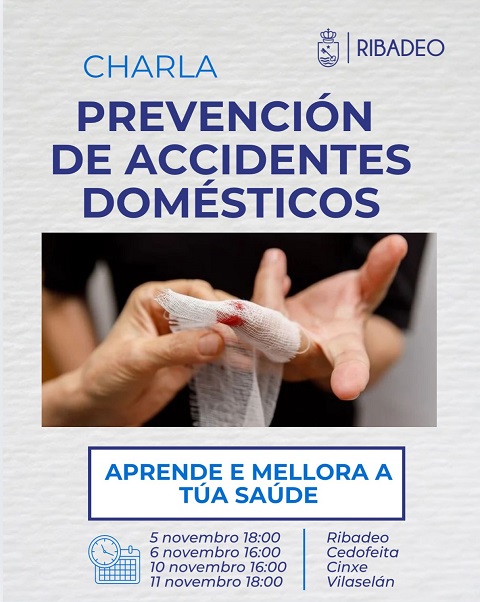 A enfermeira María Roel, do departamento de Benestar Social, Saúde e Familia do concello de Ribadeo, será a encargada de impartir unha nova serie de charlas centradas na prevención de accidentes domésticos, o coidado do fogar e os primeiros auxilios básicos. Durante as sesións, explicarase como actuar ante situacións comúns no fogar, como queimaduras, atragoamentos, caídas ou intoxicacións por mesturar produtos de limpeza.