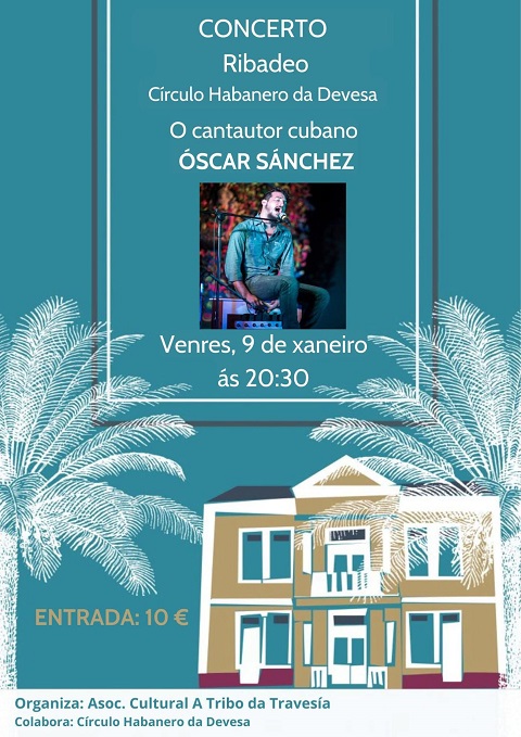 A asociación cultural A Tribo da Travesía organiza este concerto e anuncia que “Óscar Sánchez, destacada figura no panorama de canción de autor contemporánea cubana, interpretará coa guitarra, o tres e a marímbula diversos xéneros da música cubana. Para darnos unha idea da súa dilatada traxectoria profesional só diremos que no 2019 foi convidado por Silvio Rodríguez a participar no concerto 104 da xira Interminable. Despois de  viaxar por lugares como México, Noruega, Alemaña e España, temos a sorte de poder contar coa súa presenza na Mariña, no Círculo Habanero da Devesa, en Ribadeo”.