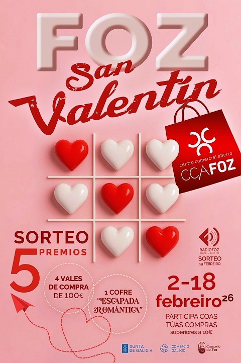 O presidente de Acia Foz-CCA, José Carlos Paleo, explica que “aquelas persoas que fagan as súas compras por importes superiores a 10 euros no noso comercio entre os días 2 e o 18 de febreiro poderán entrar no sorteo de 4 vales de compra de 100 euros cada un e dunha escapada romántica. O sorteo farémolo en Radio Foz o día 19 de febreiro”.