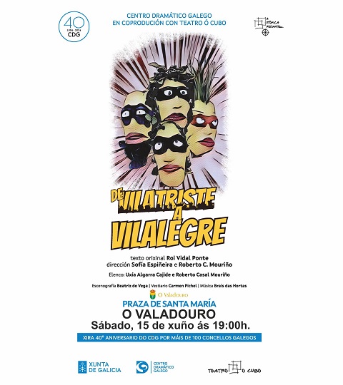 O Centro Dramático Galego celebra o seu 40 aniversario cunha programación especial que está a levar a xira por 100 concellos de Galicia e entre eles ao do Valadouro, a onde chega este sábado, 15 de xuño. Será na Praza de Santa María, de Ferreira, ás 19:00 horas. O Centro Dramático Galego, en coprodución con A Utópica Rodante, presentará o texto de Roi Vidal titulado “De Vilatriste a Vilalegre” a bordo do Furgón Utópico. Trátase dunha creación de pequeno formato baixo a dirección artística de Teatro o Cubo.