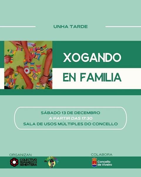 O Colectivo Pensamento e Sementeira organiza en Viveiro unha tarde para xogar en familia. Será este sábado, día 13 de decembro, a partir das 17:30 horas na Sala de Usos Múltiples do Concello de Viveiro. É unha actividade totalmente de balde.