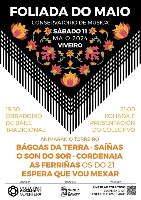 Este sábado, 11 de maio, no Conservatorio de Música de Viveiro terá lugar a Foliada do Maio, actividade organizada polo Colectivo Pensamento e Sementeira.