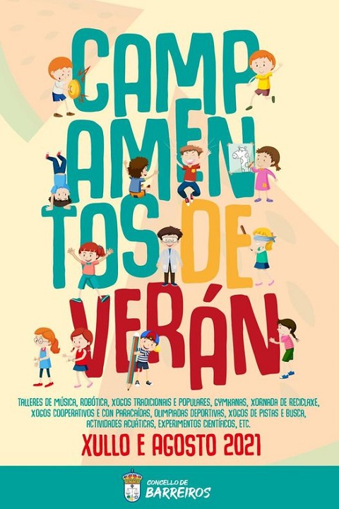 Os organizadores explican que “estes campamentos de verán ofrecen unha diversidade de actividades educativas e lúdico-deportivas que farán que os participantes gocen dunhas mañás moi entretidas e divertidas: talleres de música, robótica, xogos tradicionais e populares, gymkanas, xornada de reciclaxe, xogos cooperativos e con paracaídas, olimpíadas deportivas, xogos de pistas e busca, experimentos científicos, etcétera. Está dirixido a persoas nadas entre 2009 e 2017, inclusive, e desenvolverase do 5 de xullo ao 27 de agosto de luns a venres de 9:30 a 13:30 horas. A sede é o Pavillón Polideportivo Municipal de Barreiros.