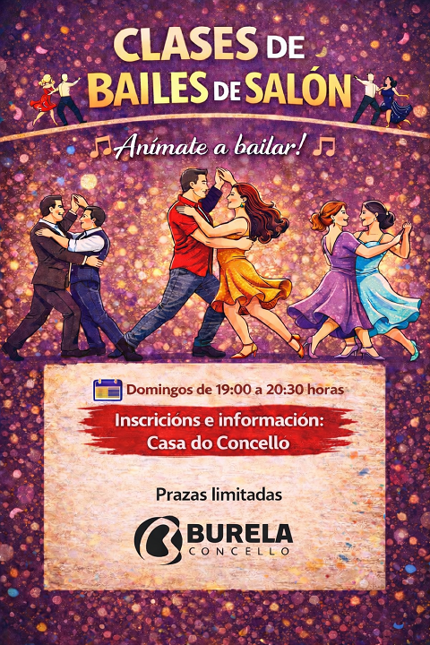 O Concello de Burela pon en marcha unha nova edición das Clases de Bailes de Salón, unha proposta dirixida á veciñanza que se desenvolverá os domingos en horario de 19:00 a 20:30 horas.