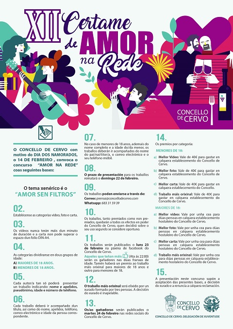 O Concello de Cervo convoca a décimo segunda edición do Certame de Amor na Rede. O tema xenérico é Amor sen filtros.