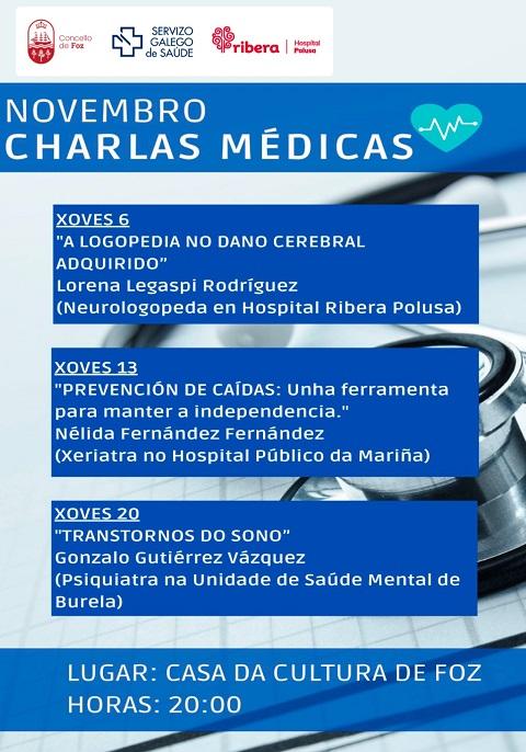 O Concello de Foz organiza unha nova edición do ciclo de charlas médicas. Serán os xoves 6, 13 e 20 de novembro