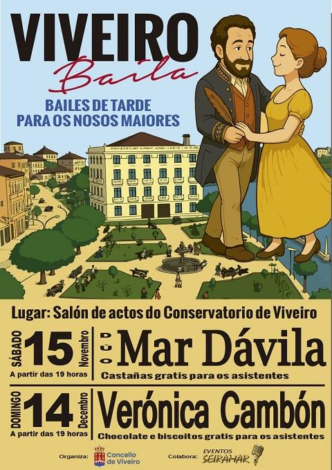 O Concello de Viveiro anuncia que “continúa a reforzar o seu compromiso co benestar e a participación activa das persoas maiores do municipio mediante a posta en marcha de novas actividades sociais e culturais”. Nesta liña o goberno local dá a coñecer o inicio do programa chamado Viveiro Baila- Bailes de tarde para os nosos maiores, que ofrecerá “encontros mensuais de convivencia, música e lecer”. A primeira sesión terá lugar este sábado, día 15 de novembro, ás 19.00 horas no salón de actos do Conservatorio de Viveiro. Actuará o dúo Mar Dávila e as persoas asistentes poderán gozar ademais dunha degustación gratuíta de castañas.