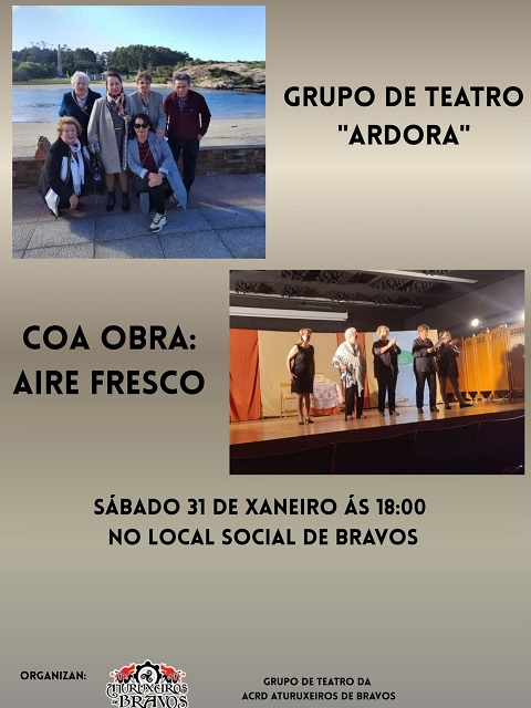O grupo de teatro Ardora, de Cervo, representará a obra titulada Aire Fresco este sábado, día 31 de xaneiro, ás 18:00 horas no Local Social de Bravos (Ourol).