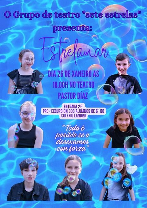 O grupo teatral Sete Estrelas presentará a obra titulada Estrelamar no Teatro Pastor Díaz, de Viveiro, este domingo, día 26 de xaneiro, ás 18:00 horas.