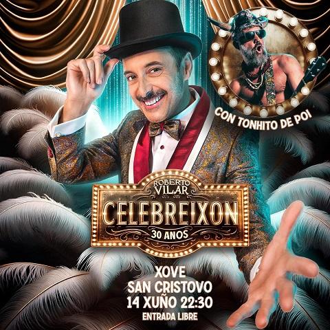 O coñecido humorista Roberto Vilar clausurará a súa xira Celebreixon, coa que conmemora os seus 30 anos de traxectoria profesional, en San Cristovo, lugar do municipio de Xove onde naceu e medrou o onde viven os seus pais. Será este venres, 14 de xuño, ás 22:30 horas con entrada libre e aparcamento.
