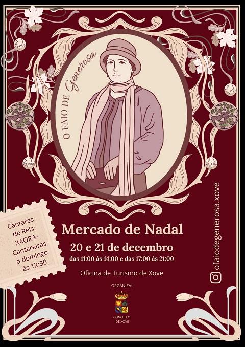 O Departamento de Emprego e Desenvolvemento Local do Concello de Xove organiza II Mercado de Nadal chamado O Faio de Generosa, que terá lugar na Oficina de Turismo os días 20 e 21 de decembro, sábado e domingo. O horario de apertura do mercado será de 11 a 14:00 e 17 a 21 horas.