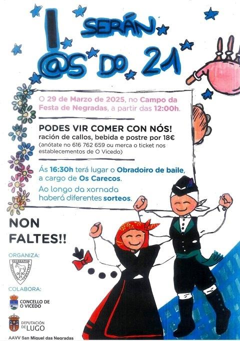 A Asociación Recreativa Cultural Os do 21, de O Vicedo, celebrará o seu primeiro serán este sábado, día 29 de marzo, a partir das 12:00 horas. Será no campo da festa de Negradas.