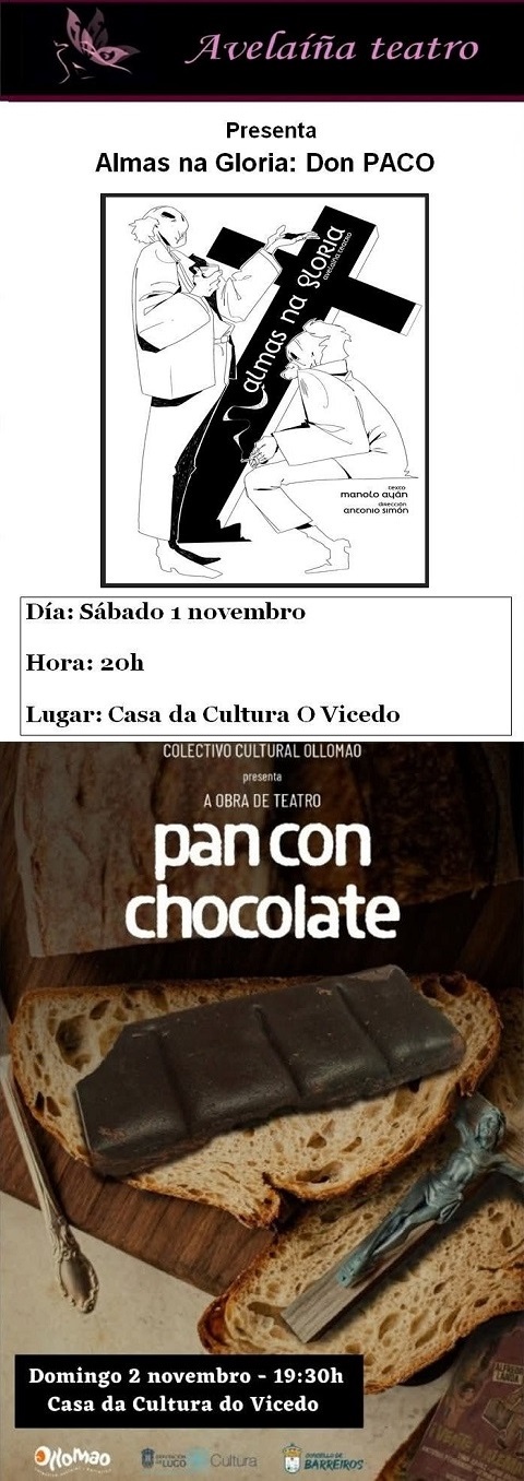E o domingo volve o teatro afeccionado ao Vicedo coa compañía do Colectivo Ollomao, de Barreiros, que presenta a obra Pan con chocolate ás 19:30 horas.