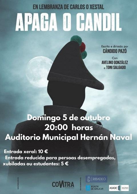 A obra teatral titulada Apaga o candil, en lembranza do artista galego Carlos O Xestal, representarase en Ribadeo este domingo, día 5 de outubro. Será no auditorio municipal Hernán Naval ás 20:00 horas.