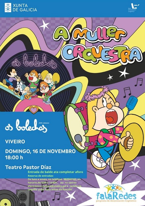 O Concello de Viveiro anuncia que é “un espectáculo do programa FalaRedes, cheo de música, humor e participación do público, pensado para gozar en familia. Ademais, transmite valores como a igualdade, o traballo en equipo e o uso do galego”.