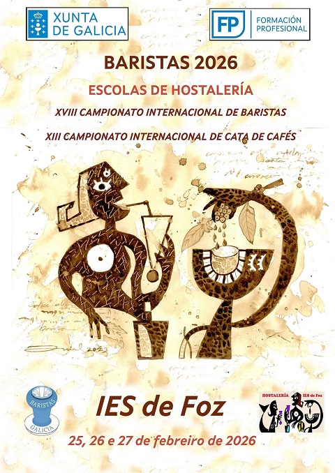 Os campionatos de baristas e cata de cafés do IES de Foz celébranse dende o mércores 25 ata o venres 27 de febreiro de 2026 no IES de Foz. “Estamos na décimo oitava edición do campionato de baristas e décimo terceira do campionato de cata. Un ano máis superámonos e participan 26 centros de hostalería de 14 comunidades autónomas, tamén do estranxeiro, con participantes de Portugal e Italia. Nesta edición contamos co Centro de Hostalería de Viana do Castelo, en Portugal, e a Escola Giuseppe Zanardeli, de Brescia (Italia)”, anuncia o IES de Foz.