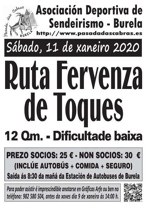 A asociación deportiva de sendeirismo Pasada das Cabras, de Burela, organiza unha ruta pola Fervenza de Toques para este sábado, 11 de xaneiro.