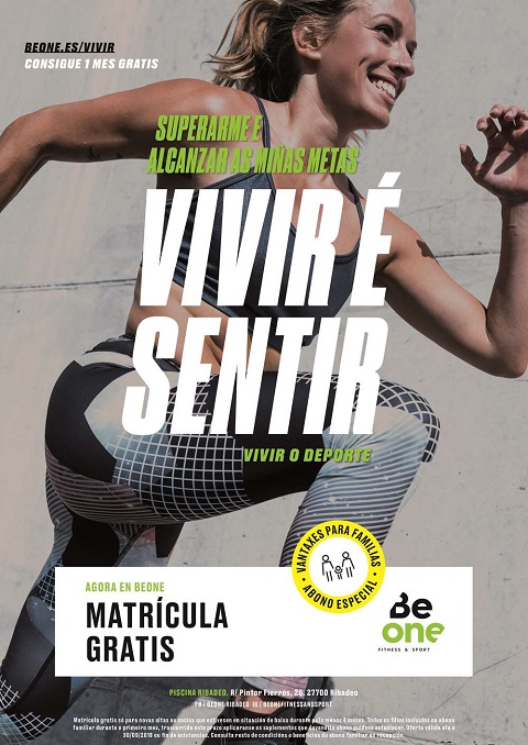 “Vivir” é o nome da súa campaña. Os responsables do centro buscan que os seus novos usuarios póidanse sentir mellor grazas ao deporte e para iso a mellor solución é deixarse guiar polos seus profesionais. O centro trata de facilitar a inscrición ao usuario ofrecendo unha proba gratuíta e, se se inscriben, a matrícula sen custo en todos os seus abonos. E se aínda así non se atopan satisfeitos co servizo, volven ofrecer garantía de devolución do primeiro mes. Esta iniciativa, testada por primeira vez na campaña de xaneiro, demostrou que máis do 98% dos usuarios non se arrepinten. Para esta campaña o centro habilitou a web beone.es/vivir/ribadeo onde o usuario poderá atopar toda a información que necesite e onde poderá entrar no sorteo dun mes gratuíto.