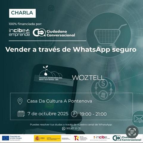 A Casa da Cultura da Pontenova acollerá unha charla sobre como vender a través de WhatsApp. Será o día 7 de outubro, martes, de 19:00 a 21:00 horas.