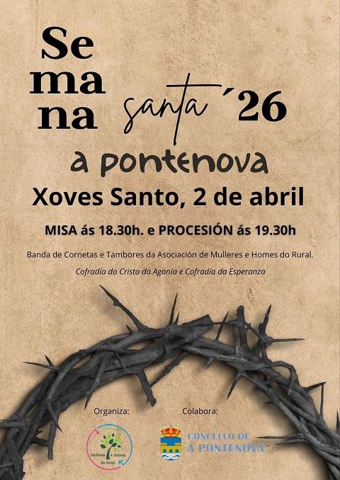 Os actos principais da Semana Santa da Pontenova será este xoves, día 2 de abril, xornada na que haberá misa ás 18:30 horas e procesión ás 19:30.
