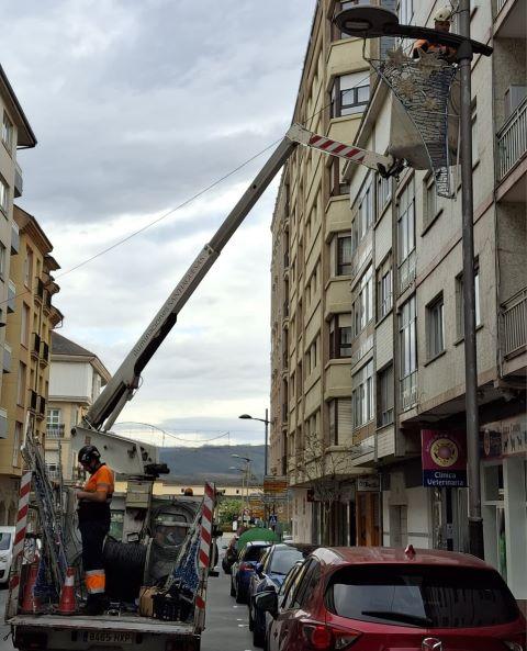 A concelleira de Comercio e Turismo, Marta Saiz, explica que “onte deu comezo a instalación en Ribadeo das luces de Nadal con antelación suficiente á súa inauguración para facelo con calma e sen atropelos de última hora”.