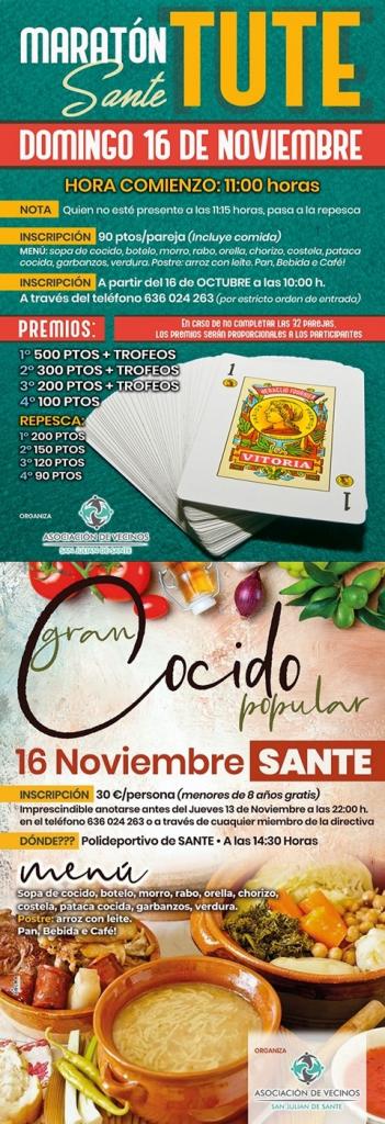 Para asistir al cocido popular hay que anotarse antes del jueves 13 de noviembre a las 22:00 horas. Y para participar en el maratón de tute también ese necesario inscribirse previamente.