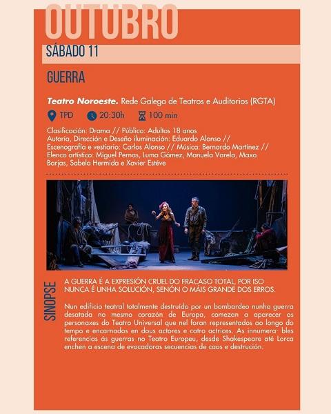 Teatro Noroeste representa “Guerra” este sábado, 11 de outubro, en Viveiro