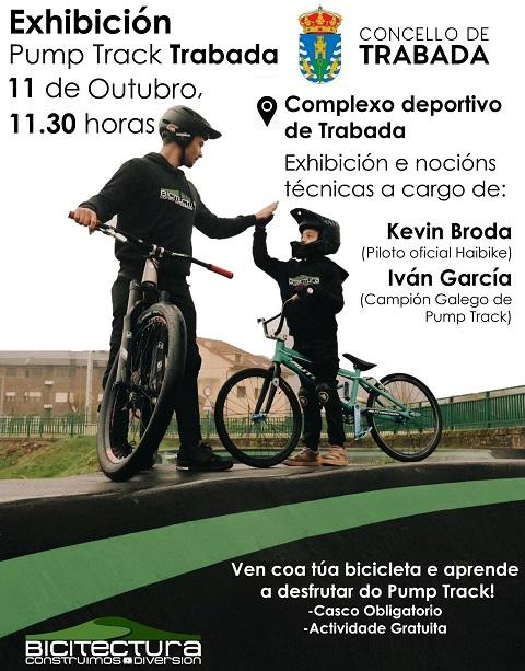 O Complexo Deportivo de Trabada acollerá unha exhibición de pump track este sábado, día 11 de outubro desde as 11:30 horas.