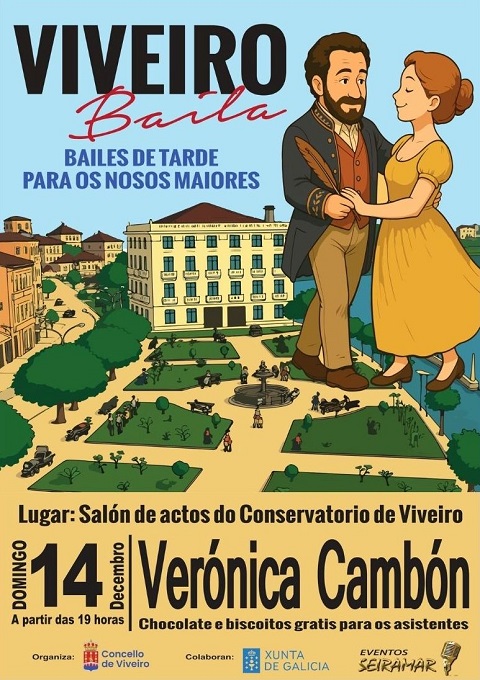 Dentro do programa Viveiro Baila, que ofrece bailes de tarde para os maiores, no salón de actos do Conservatorio, este domingo, día 14 de decembro, desde as 19:00 horas actuará a cantante Verónica Cambón