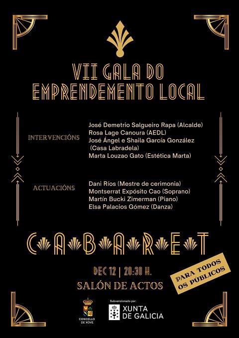 O Concello de Xove anuncia ademais que “a gala deste ano vai converter o salón de actos local nun cabaret, porque así é a vida, porque, en concreto, así é emprender: saír a escena sen rede, sen certezas, con maquillaxe, con ilusión e con feridas”.