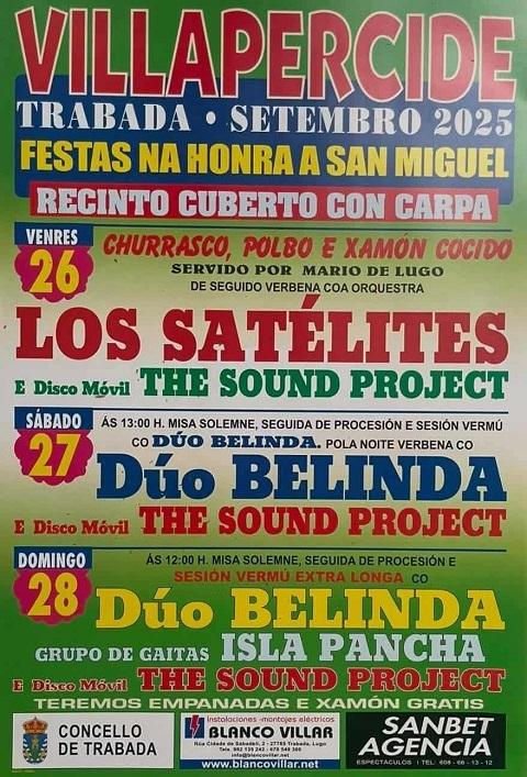 Vilapercide, no municipio de Trabada, celebrará as festas na honra a San Miguel esta fin de semana, desde o venres 26 ata o domingo 28 de setembro.