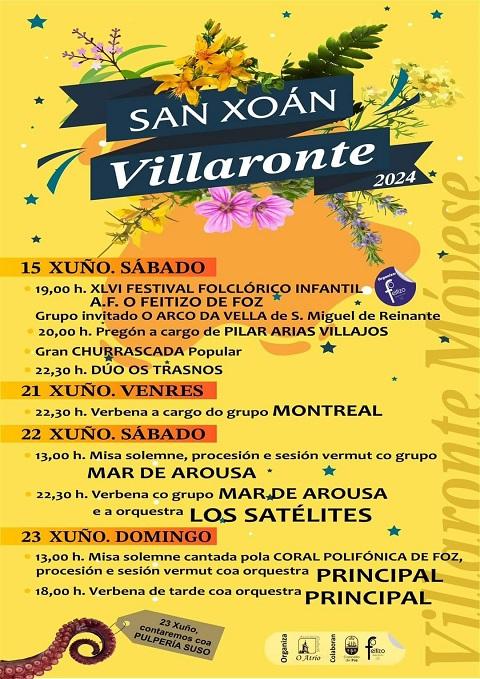 A parroquia focense de Vilaronte celebra as súas festas patronais do San Xoán os días 15, 21, 22 e 23 de xuño. Serán no atrio da igrexa, onde se instalará unha carpa.