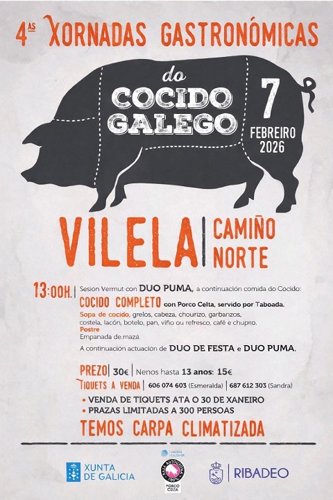 Vilela, no municipio de Ribadeo, celebrará o sábado 7 de febreiro a cuarta edición das Xornadas Gastronómicas do Cocido Galego.