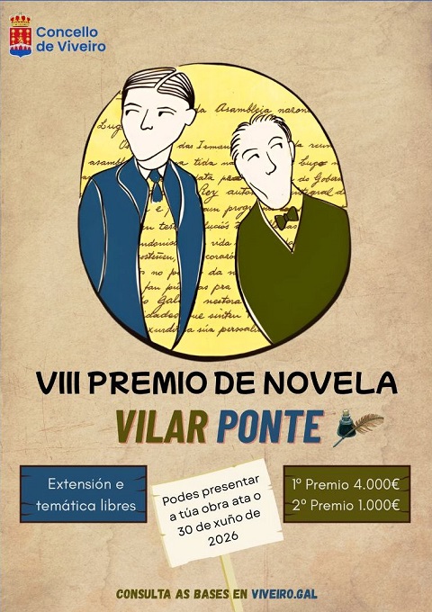 O Concello de Viveiro vén de convocar a oitava edición do Premio de Novela Vilar Ponte, un certame literario que pretende darlle pulo á narrativa en lingua galega. O concurso establece dous galardóns: un primeiro premio dotado con 4.000 euros e un segundo premio de 1.000 euros.