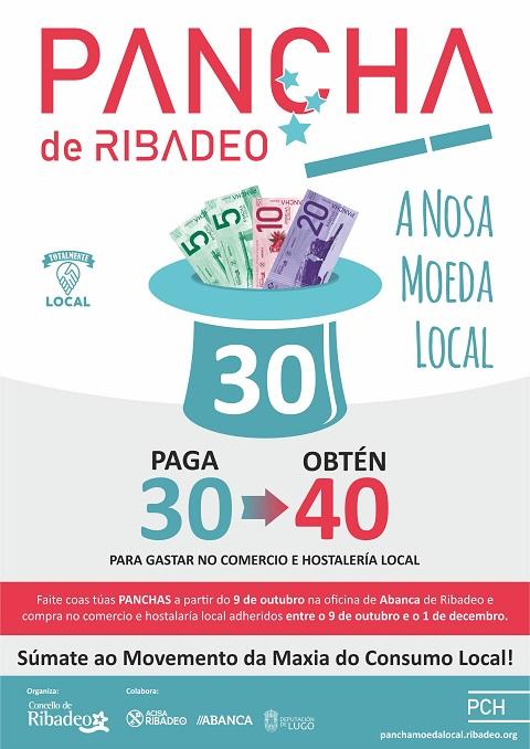 O Concello de Ribadeo en colaboración con Acisa, a Deputación de Lugo e ABanca pon en marcha a segunda edición da Pancha, a nosa moeda local para dinamizar a economía local e dar liquidez aos sectores máis afectados pola crise sanitaria da Covid19. A novidade deste 2020 é que a pancha tamén poderá empregarse na hostalería, ademais de no comercio e no sector servizos. A campaña, que foi presentada esta mañá, desenvolverase do 9 de outubro ao 1 de decembro. Son 150.000 euros os que se moverán cos 3.700 packs de panchas que se poderán canxear.