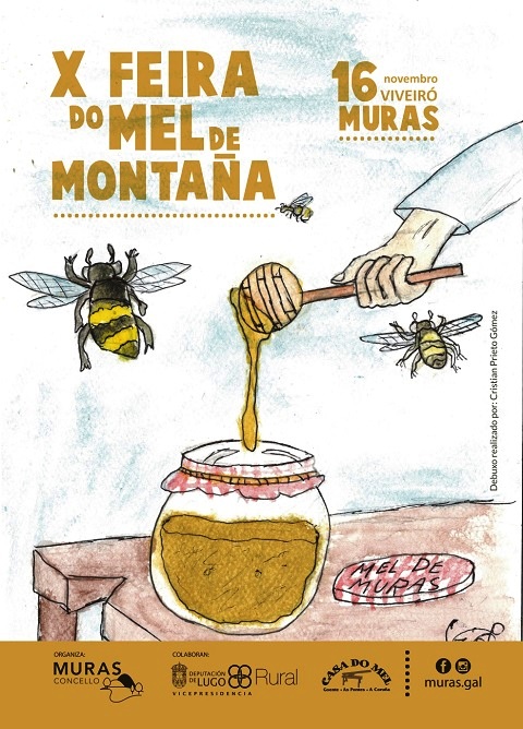 Muras celebra esta fin de semana a Feira do Mel de Montaña, un evento centrado na promoción da calidade das producións locais que chega este ano á décima edición. O deputado provincial de Rural, Daniel García, e o alcalde de Muras, Manuel Requeijo, acompañados polas concelleiras Paula Gómez e Azucena Camba e polos responsables da Casa do Mel de Goente, Isabel Goti e Manuel Ferreira, presentaron o evento, organizada polo Concello de Muras coa colaboración da Vicepresidencia da Deputación de Lugo. A feira, que se celebrará na Praza do Viveiró, contará con máis dunha vintena de postos de venda de mel e doutros produtos de temporada e proximidade, entre eles sete postos de apicultores e apicultoras de Muras e da contorna, anuncia a Vicepresidencia da Deputación de Lugo.