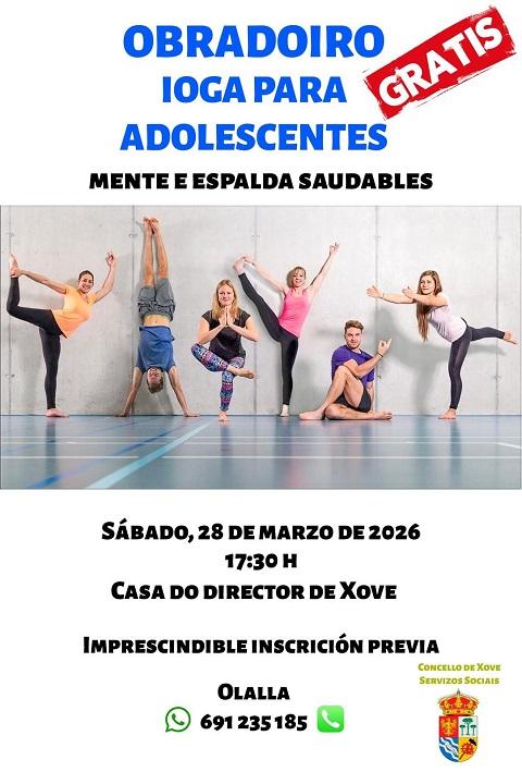 A Casa do Director, en Xove, acollerá un obradoiro de ioga para adolescentes este sábado, día 28 de marzo, ás 17:30 horas. É gratuíto, pero as prazas son limitadas e hai que inscribirse previamente.