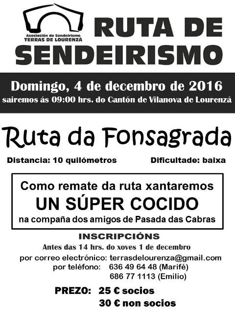A Asociación Pasada das Cabras de Burela xunto con Terras de Lourenzá e Amigos do Patrimonio de Castroverde, organizan unha xuntanza na Fonsagrada o 4 de decembro. Durante esa xornada farán unha pequena ruta de dez quilómetros de dificultade baixa.